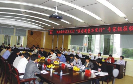 2010年10月19日,卫生厅“医疗质量万里行”专家组来院,对我院2010年“医疗质量万里行”活动开展情况进行考察指导。常务副院长都鹏飞代表医院作主题为《持续改进质量,保障医疗安全》的工作汇报。汇报从10个方面详细总结了一年来医院在提高医疗质量,确保医疗安全方面做出的努力及取得的成效,对目前存在的问题进行了分析,提出了改进措施。检查组随后深入到医院各个部门实地考察指导。在卫生厅对全省各家医院检查结果通报中,我院获得优异成绩。