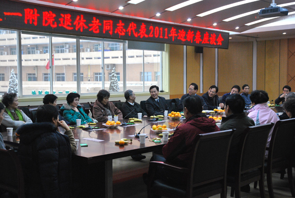 院长朱启星、纪委书记刘全礼代表医院全体职工向离退休老干部表达了节日问候和新春祝福,2010年是医院蓬勃发展的一年,医院从医疗、科研、教学、到人才培养、基础建设等各方面都取得了扎实的进步,医院的快速发展离不开老同志们的大力支持,感谢老干部们的关心和关怀。