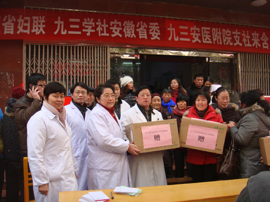 1月23日,围绕“心系两会、关注民生,深入开展创先争优活动”的主题,九三学社安医附院支社精心组织了内科、外科、妇科、儿科、乳腺科、肿瘤科、眼科等数名专家赴巢湖市含山县环峰镇开展义诊活动。专家们在李俊主委的带领下,踏着尚未消融的白雪为当地居民们送医送药送去温暖。专家们冒着严寒不厌其烦的接待每一位病人,共接诊400多人次,活动现场发放近3000元的药品。