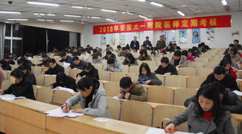 12月10日晚,医院在安医大14教学楼举行2010年度医师定期考核理论测试,院领导李旭、朱启星、都鹏飞、刘全礼、颜雨春、梁朝朝等亲临现场进行监督和检查。全院约400名中级及以下职称临床医务人员参加了考试。