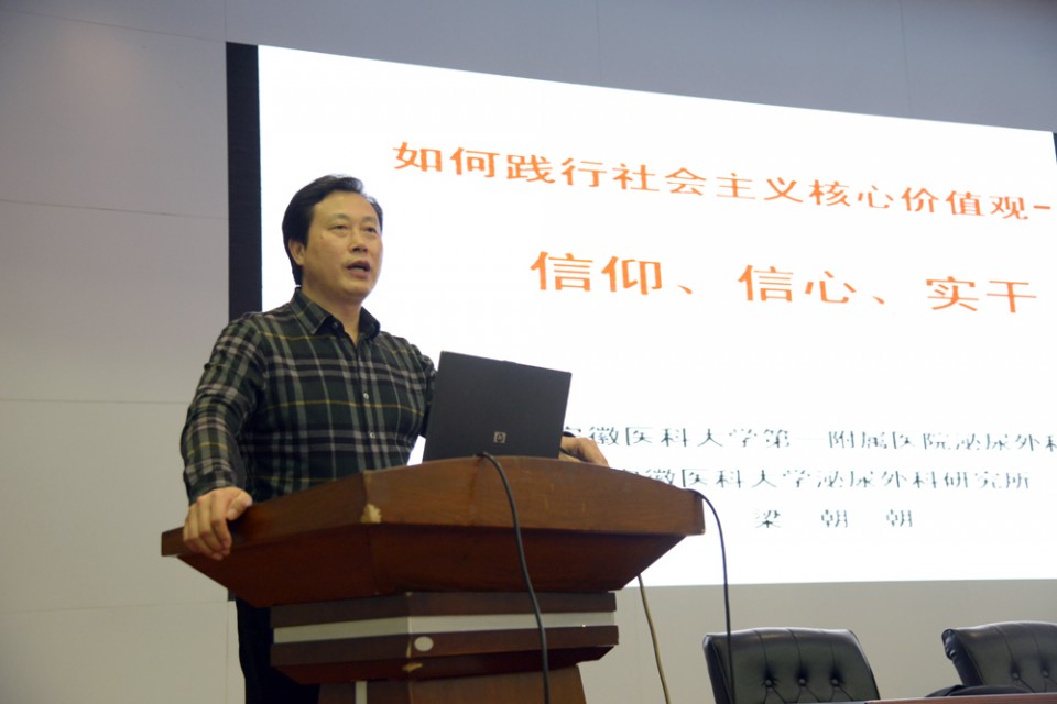 报告中,梁朝朝教授引经据典,深入浅出,结合自己多年来丰富的临床和科研工作经验,教育研究生要树立正确的人生信仰,确立成为“名医”的坚定信心和努力拼搏的实干精神,弘扬社会主义核心价值观,勤学苦练,博采众长,不断增强临床实践技能、科研意识和科研水平,提升自身的综合素质。