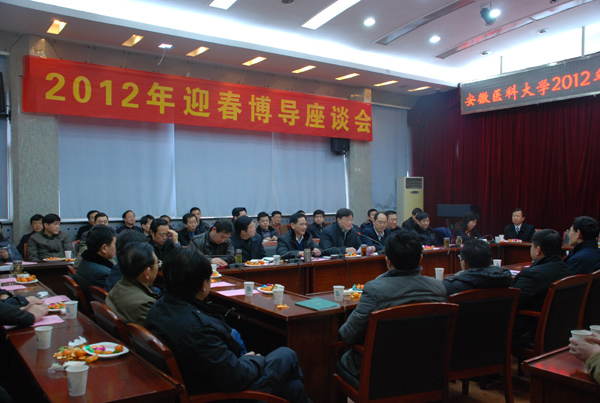 1月21日下午,大学在校第一行政楼召开2012年度全校博士生导师新春座谈会,我院党委书记梁朝朝教授等43位博士生导师参加了会议。会议紧紧围绕学校发展和高层次人才培养、未来5—15年人才队伍建设与规划进行座谈和讨论。会议由常务副校长江敏主持,校党委书记李俊致新春贺词,校长张学军做主题讲话。