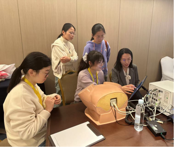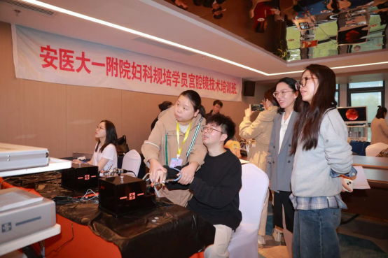 培训班理论课程丰富,包括宫腔镜手术的基本理论、操作技巧、并发症防治等。理论学习之后,在张敏敏、崔欠欠、周向东、韩扬、田旺等带教老师的指导下,学员们分组进行了宫腔镜模拟训练,包括HYSTT系统手眼协调、视野定位训练、VR模拟训练宫腔占位切除、刨削系统在内的多种训练方式,模拟临床中的各种手术场景,让学员们在实践中提升技能。通过培训,学员们得以亲身体验宫腔镜手术的各个环节,积极动手反复操作,每一步都力求精准、规范,极大地提高了学员们宫腔镜手术操作水平。