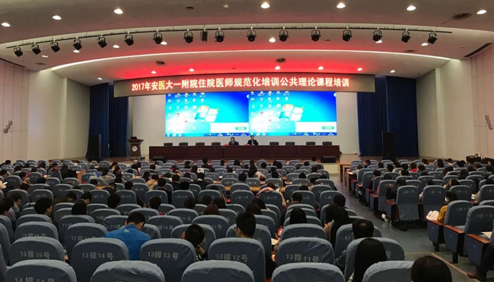 4月8日至4月9日,医院在内科医技楼四楼会议中心对300余名2016级住培学员进行住院医师规范化培训公共理论课程培训。开幕式上,副院长王珩介绍了医院住培理论课的重要性,并对培训和考试提出了具体的要求。医院毕业后教育处陈旭林处长介绍了本次公共理论课的培训内容和考试安排。本次培训是我院举行的第三届住培的公共理论课的培训,紧密围绕国家卫生计生委《住院医师规范化培训的内容与标准》,特邀了安徽医科大学发展规划处处长叶冬青教授、安徽医科大学研究生院院长孙业桓教授、我院肾脏内科主任吴永贵教授等多位国家级和省级教学名师以及教坛新秀为学员授课,专家们结合自己长期的工作经验和探索,就医德医风、政策法规、医学人文、医患沟通、公共卫生、循证医学、传染病防治、临床科研等方面对学员们进行了精彩讲座,讲座理论联系实际,内容信息量大,深入浅出、引人入胜,使广大学员受益良多。培训现场秩序良好、气氛热烈,取得了良好的培训效果。