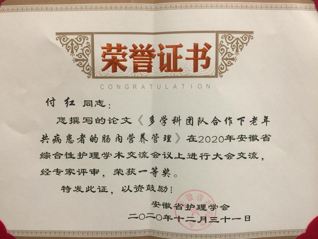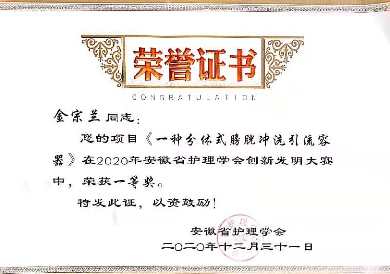 会议重点汇报讨论了安徽省护理学会2020年工作总结和2021年工作计划,并进行了2020年安徽省护理学会创新发明大赛获奖项目和安徽省综合性护理学术交流会议优秀论文颁奖。我院金宗兰护士长的《一种分体式膀胱冲洗引流容器》荣获创新发明大赛一等奖;付红护士长《多学科合作下老年共病患者的肠内营养管理》荣获论文一等奖。