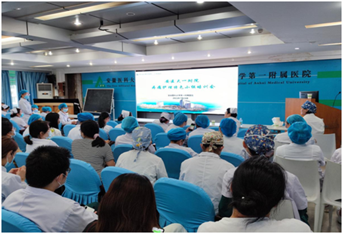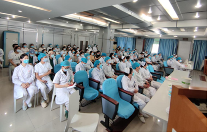 培训会上,陈善桂护士长首先介绍了疼痛护理特色小组概况。由1名护理部主任、15名护士长、91名疼痛促进护士组成的我院疼痛护理特色小组已组建9年,组织开展了疼痛相关知识培训、疼痛专题讨论、学术会议交流、社区义诊科普、疼痛护理科研创新、疼痛新技术项目的临床应用等多项活动,在医教研等各方面均发挥巨大作用。