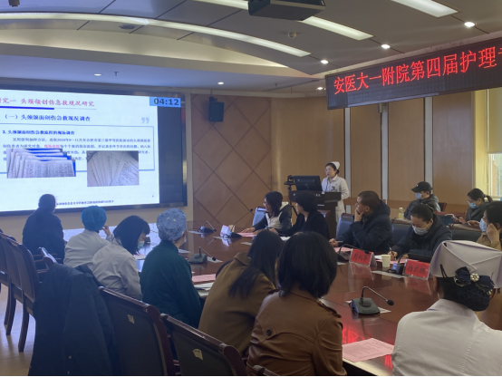 为促进医院急危重症护理临床重点专科建设,落实对5个专科建设方向各子项目的管理,进而提升急危重症专科护理服务质量, 12月18日下午,由护理部组织,在医院第三会议室、干部保健中心二楼会议室分两个会场召开第四届护理专业发展论坛---急危重症护理临床重点专科建设项目阶段汇报会。会议邀请安医大公共卫生学院流行病与卫生统计学系副主任范引光教授、张志华教授,安医大护理学院周利华教授、赵薇副教授,医院重症医学科杨启纲副教授、急诊科张建林博士担任点评专家,护理部主任胡少华、副主任任春霞、护理教研室副主任张标新、各项目负责人、科研护士、护理研究生参加此次会议,参会人员严格落实新冠疫情防控措施。会议分别由护理部副主任任春霞、护理教研室副主任张标新主持。