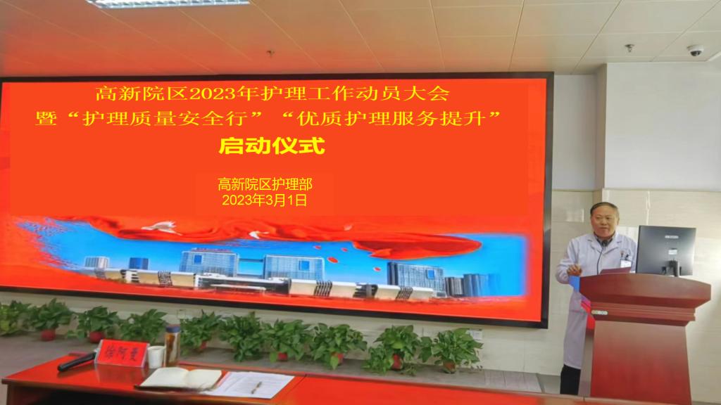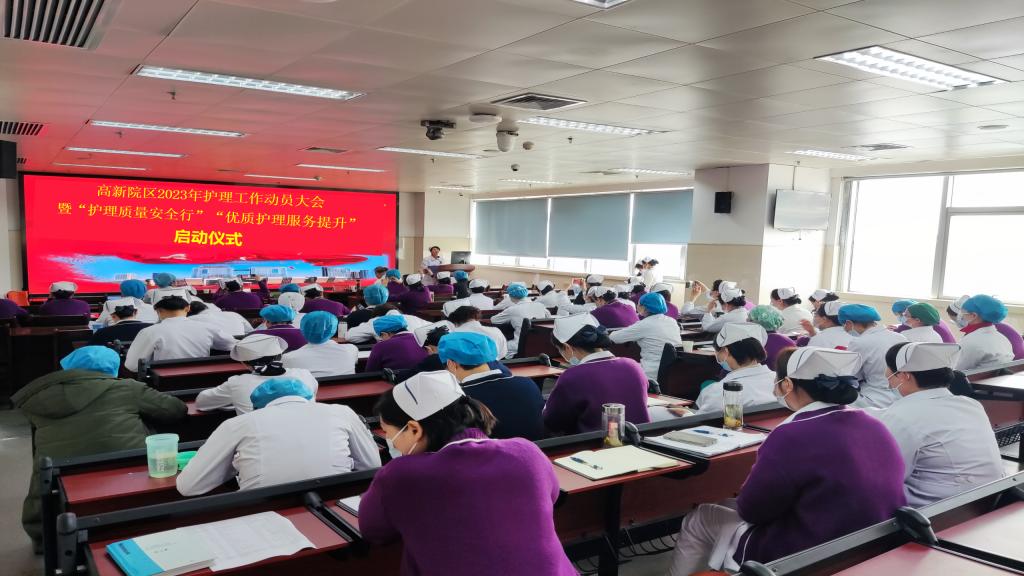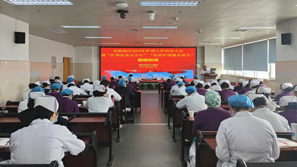 为贯彻落实医院2023年工作动员大会精神、“六大提升行动”方案, 3月1日上午,高新院区护理部在科教综合楼3楼会议室举行2023年护理工作动员大会暨“护理质量安全行”“优质护理服务提升”启动仪式。高新院区副院长徐阿曼参会并讲话,会议由医院护理部副主任、高新护理部主任韩江英主持,高新院区全体护士长参加。