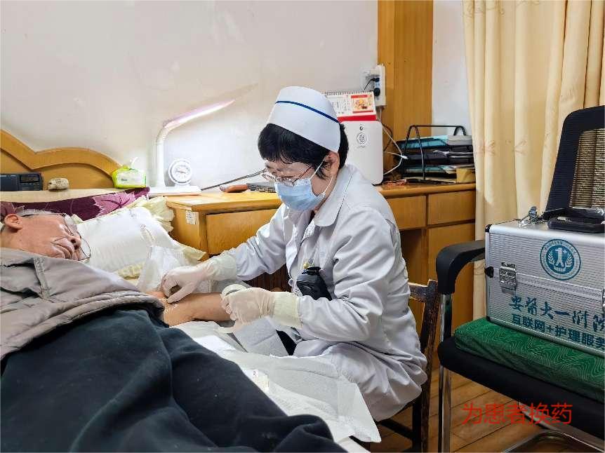 “护士长,我爸的PICC导管眼看又得换药了,他本来就有严重得帕金森、高血压,上下楼真得太不方便,我在上海工作现在也回不来……我赶紧预约了您的号,明天可以去我家帮我爸换个药吗?”几天前,肿瘤内科李峰护士长接到在本病区长期化疗患者吴老爷子远在上海工作儿子的一通“求救”电话。