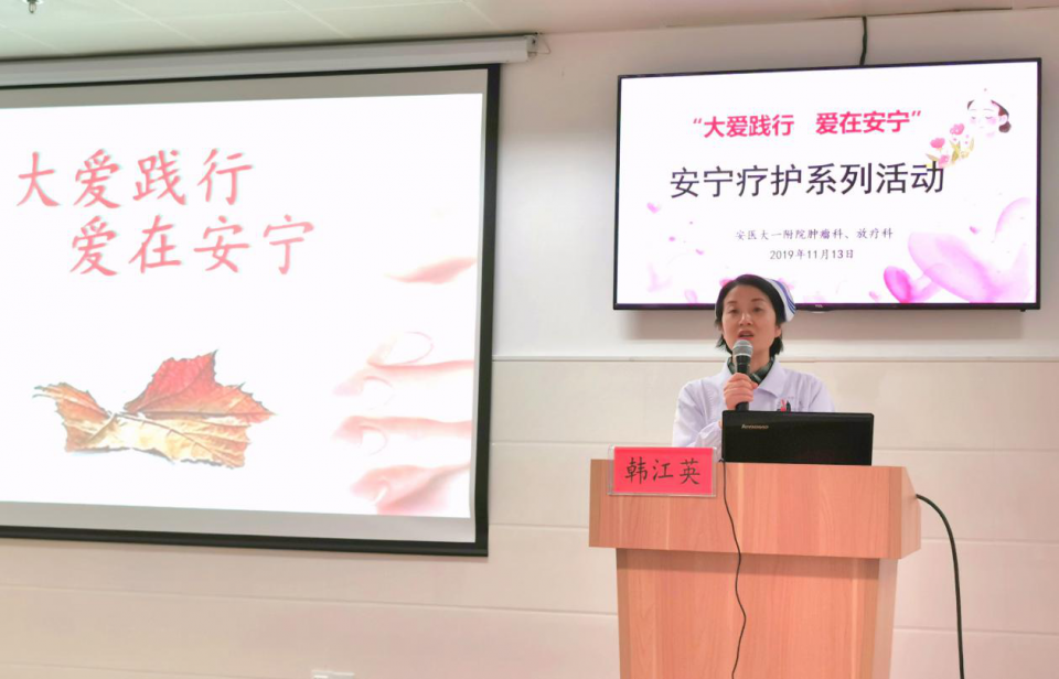 11月13日,我院肿瘤护理亚专科安宁疗护系列活动之“大爱践行,爱在安宁”在高新院区消化内镜中心会议室举办。来自全院的200余名护理人员参加,高新院区护理部副主任韩江英参加活动并讲话,肿瘤护理亚专科负责人潘玉芹护士长主持活动。