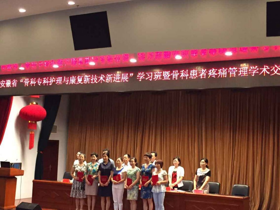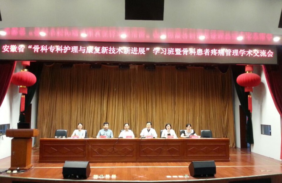 2015年7月31号,由安徽省护理学会主办安医大一附院承办的“安徽省骨科专科护理与康复新技术新进展”学习班暨骨科患者疼痛管理学术交流会在安徽医科大学图书馆一楼学术报告厅召开。安医大一附院党委书记梁朝朝、省卫计委医政医管处领导费勤福、安徽省卫计委医政医管处主任彭玉池、安徽省护理学会秘书长李志菊、骨科主任申才良应邀参加会议。会议由安医大一附院护理部主任李伦兰主持。各位领导在会议上就近年来骨科护理工作进行给予肯定与鼓励,客观分析了医改形势下护理工作面临的形势和问题,针对下一步工作任务给予指示。培训班邀请了除省内骨科著名专家以外,还邀请了上海、北京等国内知名专家进行授课。专家们以前瞻性的观点分析了临床护理、护理管理、护理科研等存在的问题以及现代的护理服务理念及康复进展。护理专家们的精彩讲学,洞悉临床护理中的操作细节,同时提出了诸多护理领域的新理念、新思维;并指导护理人员如何设计并写好护理论文,培养严谨的科研思维。培训班上,就护理热点问题进行讨论答疑。最后,省内各位护理专家就骨科患者疼痛管理经验进行了交流,大家相互借鉴,推陈出新,开拓了思路的同时明确了问题的所在与前进的方向,在全省骨科患者疼痛管理方面具有重要意义。