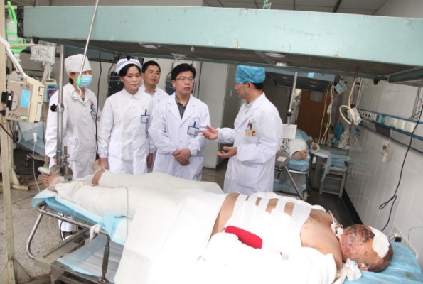 10月19日上午10时许,我院烧伤科从巢湖紧急转入两名重症烧伤伤员。因该科室近期烧伤病员增加,护理人员较为紧缺,该科护士长紧急向护理部报告,要求增派护理人手。医院护理部接到报告后,立即启动《安徽医科大学第一附属医院护理部紧急护理人力资源调配预案》,成立护理应急小分队支援。同时,分管副院长李家斌、党委委员、护理部主任李伦兰等前往医院烧伤科重症监护病房看望伤员。
