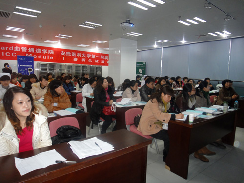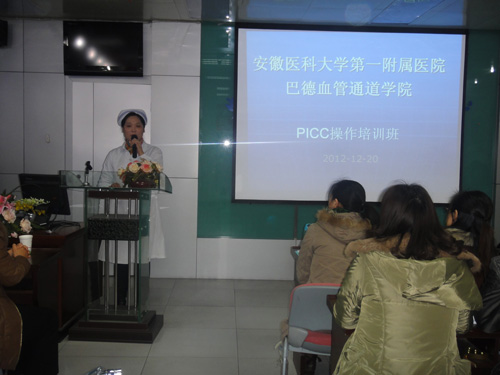 为了进一步规范PICC的临床正确使用,2012年12月20日-21日我院和巴德血管通道学院联合举办全省PICC操作培训班,我院护理部主任李伦兰致欢迎词。培训班正式邀请全省各地市50名学员参加,我院护理人员主动参与培训,实际参会者达80余人。