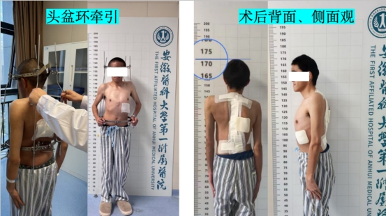 脊柱外科团队结合格桑实际情况,充分讨论后,决定先行头盆环牵引、松解,再行截骨矫形内固定术,格桑及家属表示理解和支持。