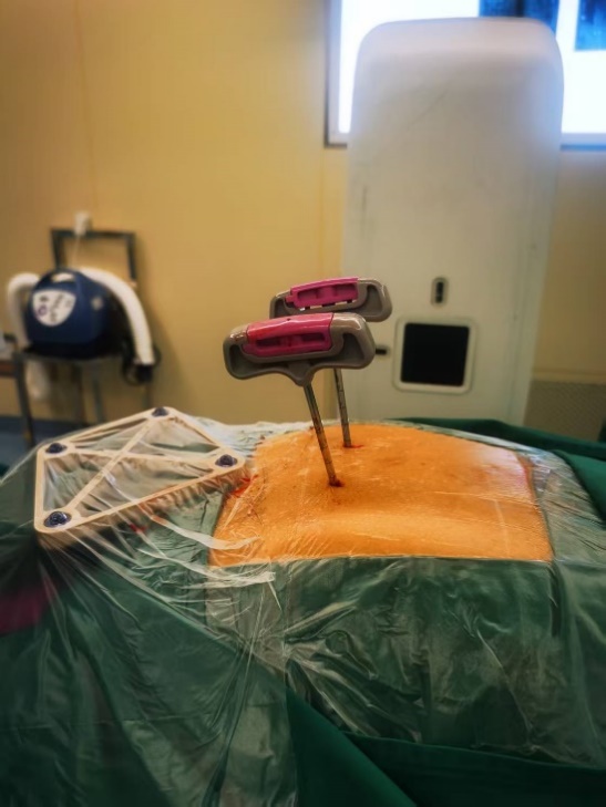 近日,我院骨病骨肿瘤外科胡勇教授团队利用手术机器人辅助,完成上胸椎转移性肿瘤的微创杂交手术。