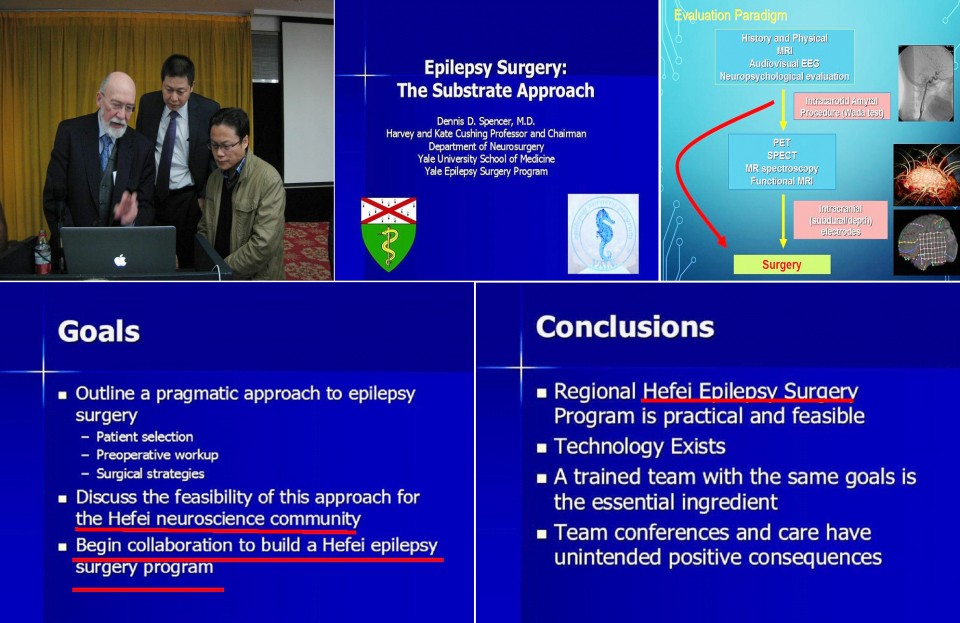 自今年年初以来,在《癫痫的外科手术治疗》新技术项目的支持下,科室已成功开展癫痫外科手术21例,术后癫痫发作频率、严重程度较往年同期均明显改善,患者生活质量明显提高。癫痫专业组在程宏伟主任的带领下,相继开展了症状性癫痫的外科治疗,术中皮层脑电监测(Electrocorticogram, Ecog)下癫痫灶切除,迷走神经刺激术(Vagus nerve stimulation, VNS)等一系列癫痫外科手术,通过与神经内科、脑电图室(EEG)、影像科等学科积极沟通协作,初步建立了癫痫外科的多学科协作诊疗平台(MDT模式),加强了内、外科综合诊疗与管理水平;从患者实际出发,个体化地制定临床诊疗方案,体现了个体化诊疗理念的优越性;与此同时,科室积极加强对外交流,寻求合作,与美国耶鲁大学医学院癫痫中心(Yale University School of Medicine Epilepsy Comprehensive Center),北京三博脑科医院等往来交流频繁,初步建立了远程会诊机制,规范手术方案,丰富管理经验。