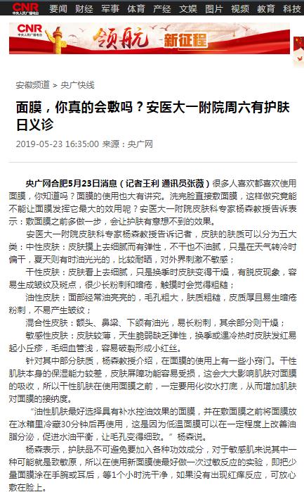 央广网合肥5月23日消息(记者王利 通讯员张薇)很多人喜欢都喜欢使用面膜,你知道吗?面膜的使用也大有讲究。洗完脸直接敷面膜,这样做究竟能不能让面膜发挥它最大的效用呢?安医大一附院皮肤科专家杨森教授告诉表示:敷面膜之前多做一步,会让护肤有意想不到的效果。安医大一附院皮肤科专家杨森教授告诉记者,皮肤的肤质可以分为五大类:中性皮肤:皮肤摸上去细腻而有弹性,不干也不油腻,只是在天气转冷时偏干,夏天则有时油光光的,比较耐晒,对外界刺激不敏感;