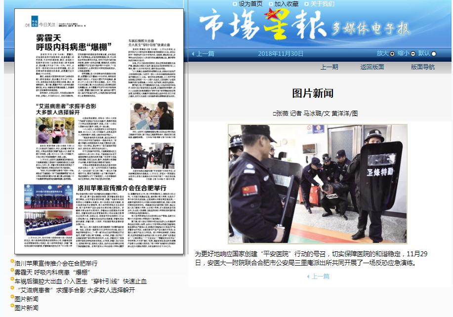 为更好地响应国家创建“平安医院”行动的号召,切实保障医院的和谐稳定,11月29日,安医大一附院联合合肥市公安局三里庵派出所共同开展了一场反恐应急演练。