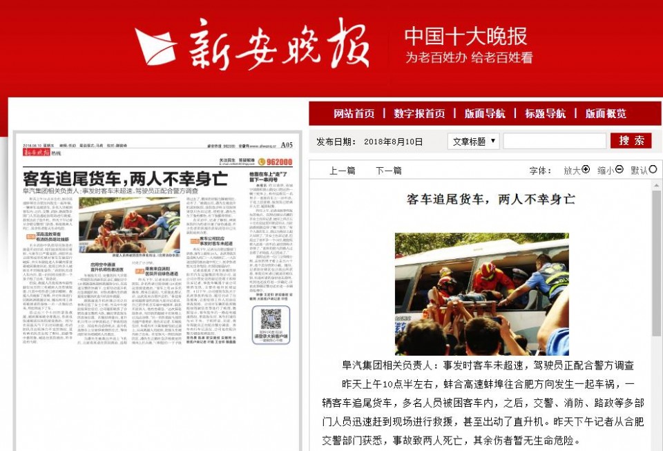 阜汽集团相关负责人:事发时客车未超速,驾驶员正配合警方调查