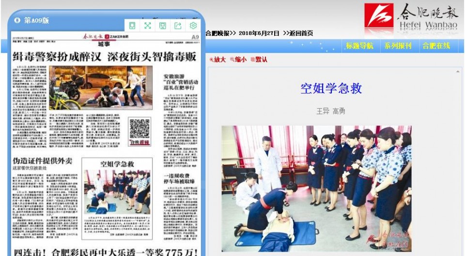 6月26日下午,由安徽医科大学第一附属医院和安徽省急救中心(120)联合主办的安徽省急救技能科普系列培训——“守望行动”,在安徽民航机场集团办公楼会议室举办。来自机场集团一线员工(安检、候管、机务、客货)、东航安徽分公司客舱部员工,总人数约120人接受专业老师培训。据悉,活动将用3-5年的时间,陆续走进高校、社区、乡村,为生命保驾护航。