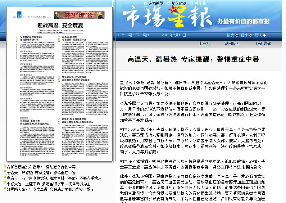 星报讯(张薇 记者 马冰璐) 连日来,合肥持续高温天气,因酷暑导致身体不适而就诊的患者也明显增加。如果不慎晒伤或中暑,该如何处理?一起来听听安医大一附院急诊科专家张泓怎么说。