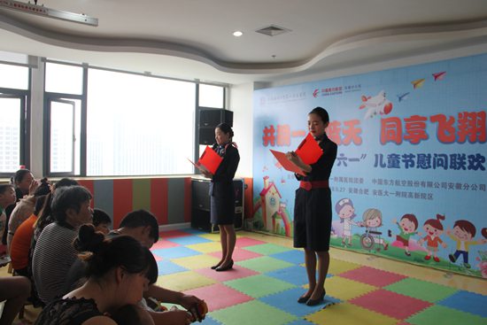 据悉,本次活动由安徽医科大学第一附属医院团委和中国东方航空股份有限公司安徽分公司团委联合组织。安医大一附院和东航安徽分公司相关领导到场为小朋友们提前送上了节日的祝福。