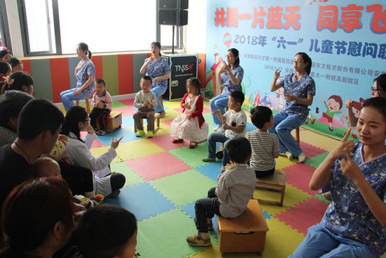 当天,东航志愿者们带来的擒拿格斗表演让小朋友们耳目一新,有的小朋友跃跃欲试,展现自己小小男子汉不拒与疾病做斗争的勇气;美丽大方的空乘人员短时间教会大家丝巾的系法,培养了小朋友的耐心和动手能力;小儿神经康复中心的团员青年们则表演了精心排练的舞蹈《宝贝、宝贝》,还带领小朋友一起表演手语节目《感恩的心》。