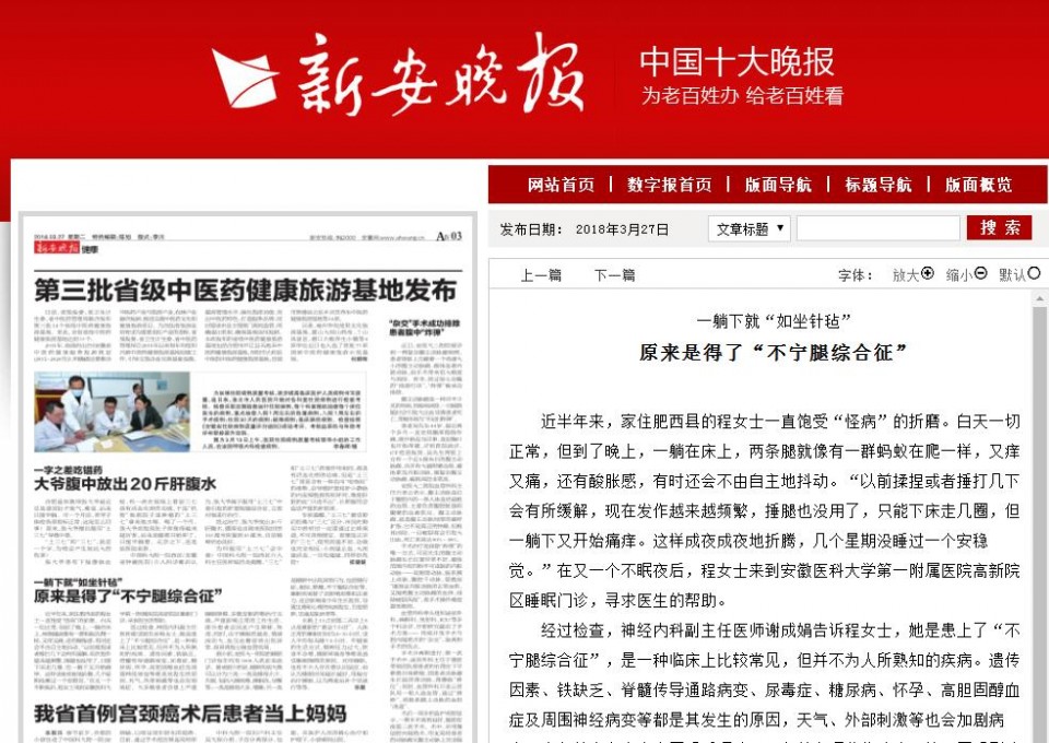 近半年来,家住肥西县的程女士一直饱受“怪病”的折磨。白天一切正常,但到了晚上,一躺在床上,两条腿就像有一群蚂蚁在爬一样,又痒又痛,还有酸胀感,有时还会不由自主地抖动。“以前揉捏或者捶打几下会有所缓解,现在发作越来越频繁,捶腿也没用了,只能下床走几圈,但一躺下又开始痛痒。这样成夜成夜地折腾,几个星期没睡过一个安稳觉。”在又一个不眠夜后,程女士来到安徽医科大学第一附属医院高新院区睡眠门诊,寻求医生的帮助。