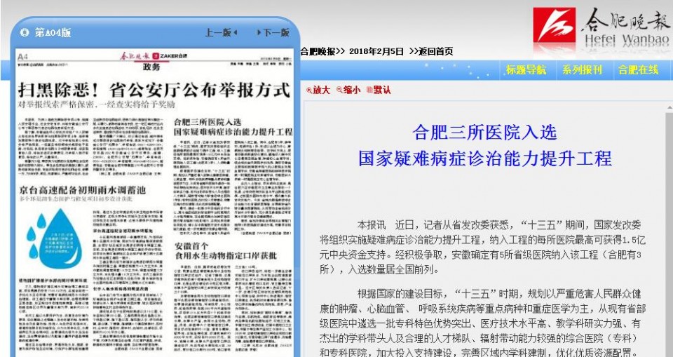 在本次入选名单中,我省有5所省级医院纳入该工程。其中,合肥有3所,蚌埠市、芜湖市各1所,形成以合肥为中心、兼顾皖北和皖南的格局。在专科方向上,根据安徽疾病谱变化情况,瞄准总人群中死亡率最高的脑血管、肿瘤和心血管专科,结合相关省级医院学科优势,确定安徽省立医院和皖南医学院弋矶山医院主攻脑血管专科,安徽省肿瘤医院和蚌埠医学院第一附属医院主攻肿瘤专科,安徽医科大学第一附属医院主攻心血管专科。
