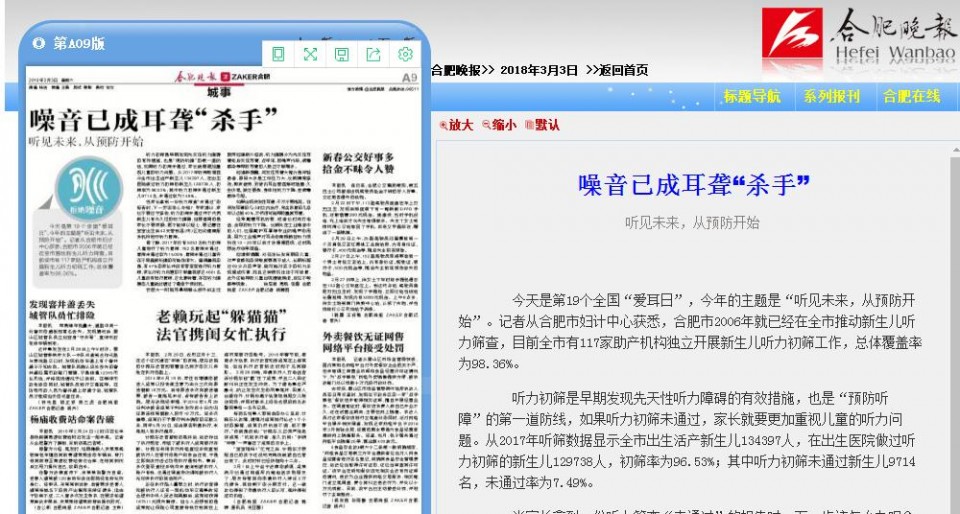 今天是第19个全国“爱耳日”,今年的主题是“听见未来,从预防开始”。记者从合肥市妇计中心获悉,合肥市2006年就已经在全市推动新生儿听力筛查,目前全市有117家助产机构独立开展新生儿听力初筛工作,总体覆盖率为98.36%。