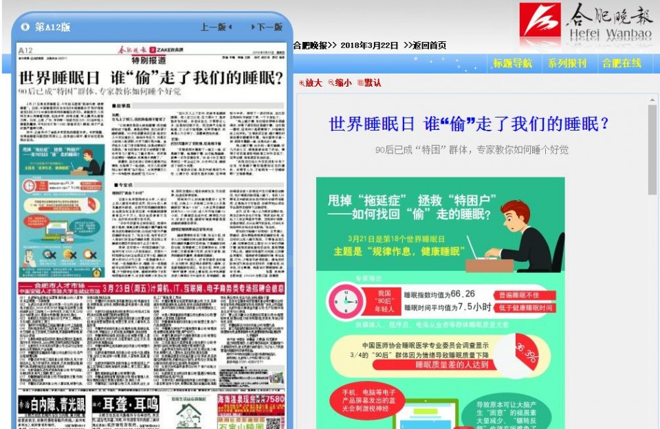 昨天,记者采访了省城多家医院的睡眠专家。专家提醒:如果被睡眠问题困扰两周以上,自身难以调节,最好前往医院就诊咨询。