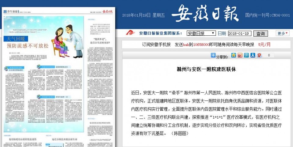 近日,安医大一附院“牵手”滁州市第一人民医院、滁州市中西医结合医院等公立医疗机构,正式组建跨地区医联体。安医大一附院依托自身优质品牌和资源,对医联体内医疗机构实行管理,全面提升医联体内各医院管理水平和综合服务能力。同时通过一、二、三级医疗机构联合共建,探索推进“1+1+1”医疗改革模式,在医疗机构之间建立统筹协调和分工合作机制,逐步实现分级诊疗和双向转诊,实现省级优质医疗资源有效下沉基层。 (陈图图)