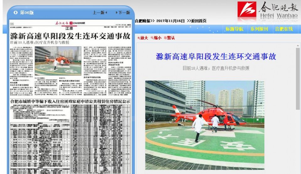 另据了解,与安徽医科大学第一附属医院合作的救援医用直升机也参与了救援。