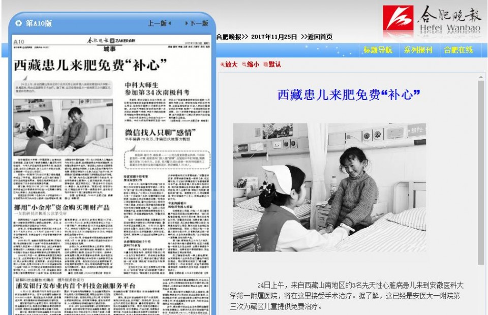 据了解,早在2012年、2013年,该院便连续两年受省卫计委委派共计收治15位西藏山南地区先心病患儿,且全部治愈出院。