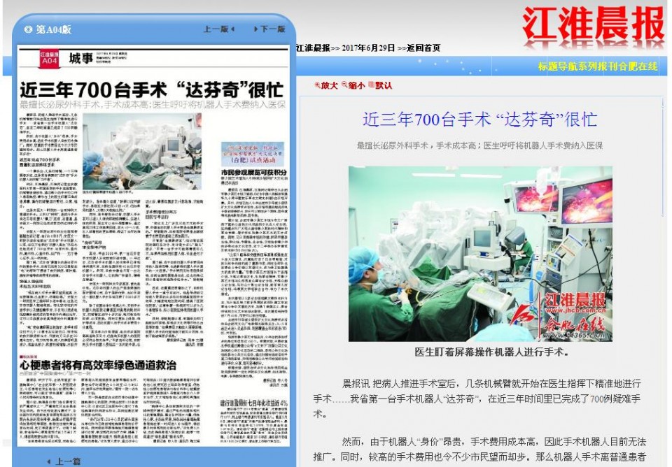 其实,早在2006年,第一台达芬奇手术机器人系统就被引进中国。11年过去,达芬奇手术机器人的优势早已体现得淋漓尽致,目前全国共有46台达芬奇机器人。然而,目前安徽省只有一台达芬奇手术机器人,它的推广和普及,障碍在哪里?