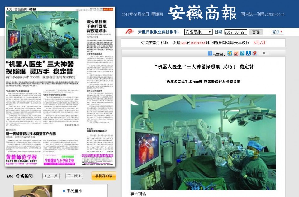 “我去了南京、北京、上海,跑了好多家医院,都说手术难度大,风险高。”听朋友说安医大一附院有手术机器人,能做疑难手术,他来到了安医大一附院。做了详细的检查后,梁朝朝教授制定了手术方案,分两次对周先生实施达芬奇手术机器人辅助下的双侧肾脏部分切除手术,保留肾脏。