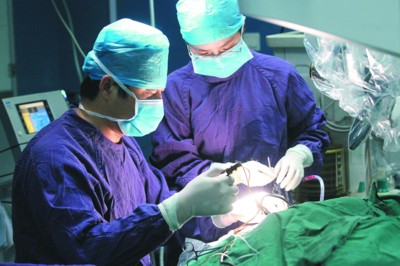 8月16日,安徽医科大学第一附属医院手术室里,医生正在为涡阳县5岁聋儿郑好植入人工耳蜗。为使贫困家庭的听力残疾儿童及时获得救治,我省今年在同步实施中国残联“七彩梦行动计划”人工耳蜗项目的基础上,全面启动贫困聋儿抢救性康复工程,300名贫困聋儿因此将被免费植入人工耳蜗,400名贫困聋儿将免费配戴助听器。当日,首批3名贫困失聪儿童进行了人工耳蜗植入手术。