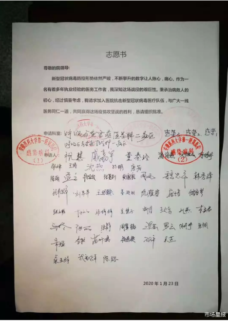 马寒香是安医大一附院的一名护士长,她看到号召后,第一时间向医院交了请战书。