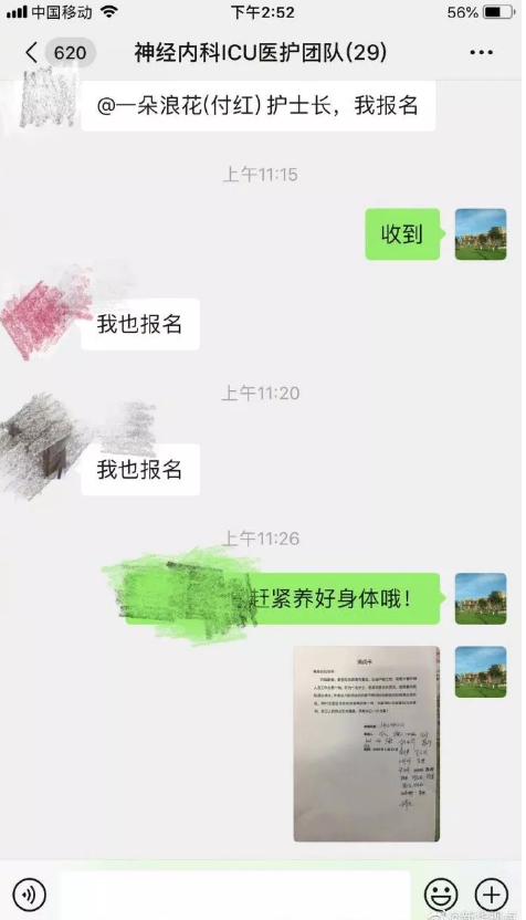1月23日,安徽医科大学第一附属医院近千名医护人员纷纷签名或在工作群中报名,表示请求加入医院抗击新型冠状病毒的医疗队伍,为保卫人民健康贡献自己一份力。