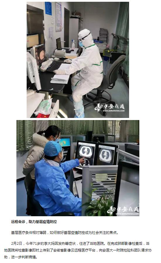 据悉,安医大一附院作为安徽省影像质控中心、安徽省影像医联体的牵头单位和安徽省放射分会主委单位,向全省影像同仁发出“牢记影像人责任担当坚决打赢疫情防控阻击战”的倡议书,倡议大家勇担重任,共克时艰,发挥好安徽省影像云平台,积极开展远程影像诊断和会诊功能,提高基层医院对患者病情的前期甄别和确诊能力,防止疫情扩散。目前,安医大一附院通过安徽影像云平台,会诊病例近百份。(孙林 李晓舒)