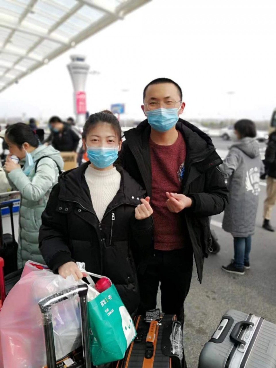 和董永鹏并肩逆行的,还有他的新婚妻子刘霞玲。2月13日,夫妻二人作为安徽省第四批支援湖北医疗队队员,一同踏上了前往武汉的征程。
