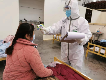 而早饭时间刚过不久,她就听到隔离病区传来歌声“感恩的心,感谢命运……”。原来,患者为了表达对医疗队的感谢,特意播放了一曲“感恩的心”,还编排了动作,整齐地列队表演了起来。歌曲唱完,大家一起举起手臂,高喊“武汉加油!武汉加油!”