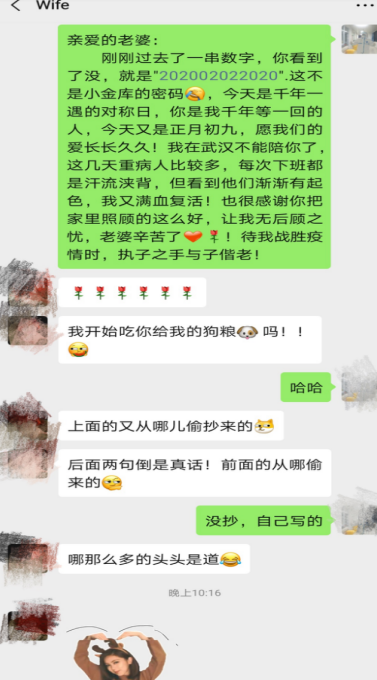 昨天是2020年2月2日,在这个千年一遇的“完全对称日”和“最佳表白日”里,远在武汉的安徽援鄂医疗队员在与疫情战斗的间隙,也向家人表达了自己的爱和思念。