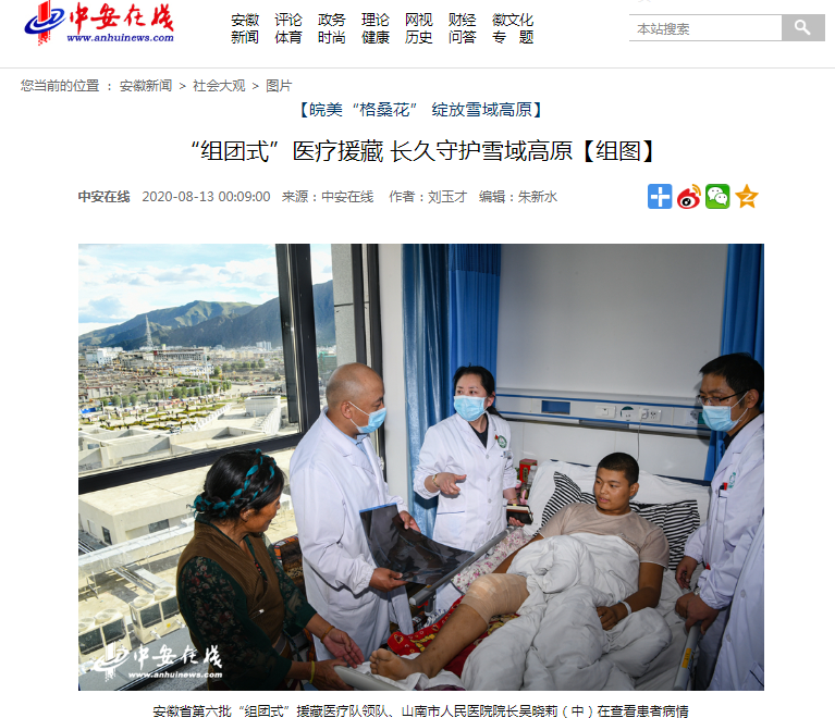 今年7月份国家卫健委对全国三级公立医院开展的绩效考核中,山南市人民医院名列西藏地市级医院榜首。通过接续不断的医疗援藏,山南市总体医疗技术水平和人才实力,有了突飞猛进的发展。山南市卫健委党组成员、副主任石磊表示:“五年来,安徽省投入了1.248个亿的卫生援藏资金,大幅提升了四个县的卫生服务能力。下一步我们将进一步推动优秀医疗人才到基层去服务,同时开展智慧医疗援藏。”(记者 刘玉才)