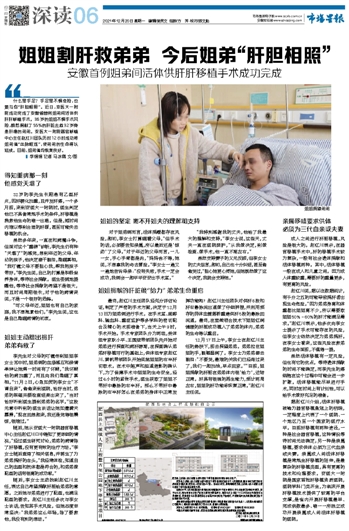 随后,她从安医大一附院器官移植中心主任赵红川口中得知了更详细的情况,“经过医生研究讨论,弟弟的病情除了肝移植,没有更有效的治疗方法。”李女士随后查阅了相关信息,并萌生了为弟弟捐肝的念头,“我经常体检,知道自己的血型和抗体都是符合的,和弟弟做配型的话有很高的成功率。”