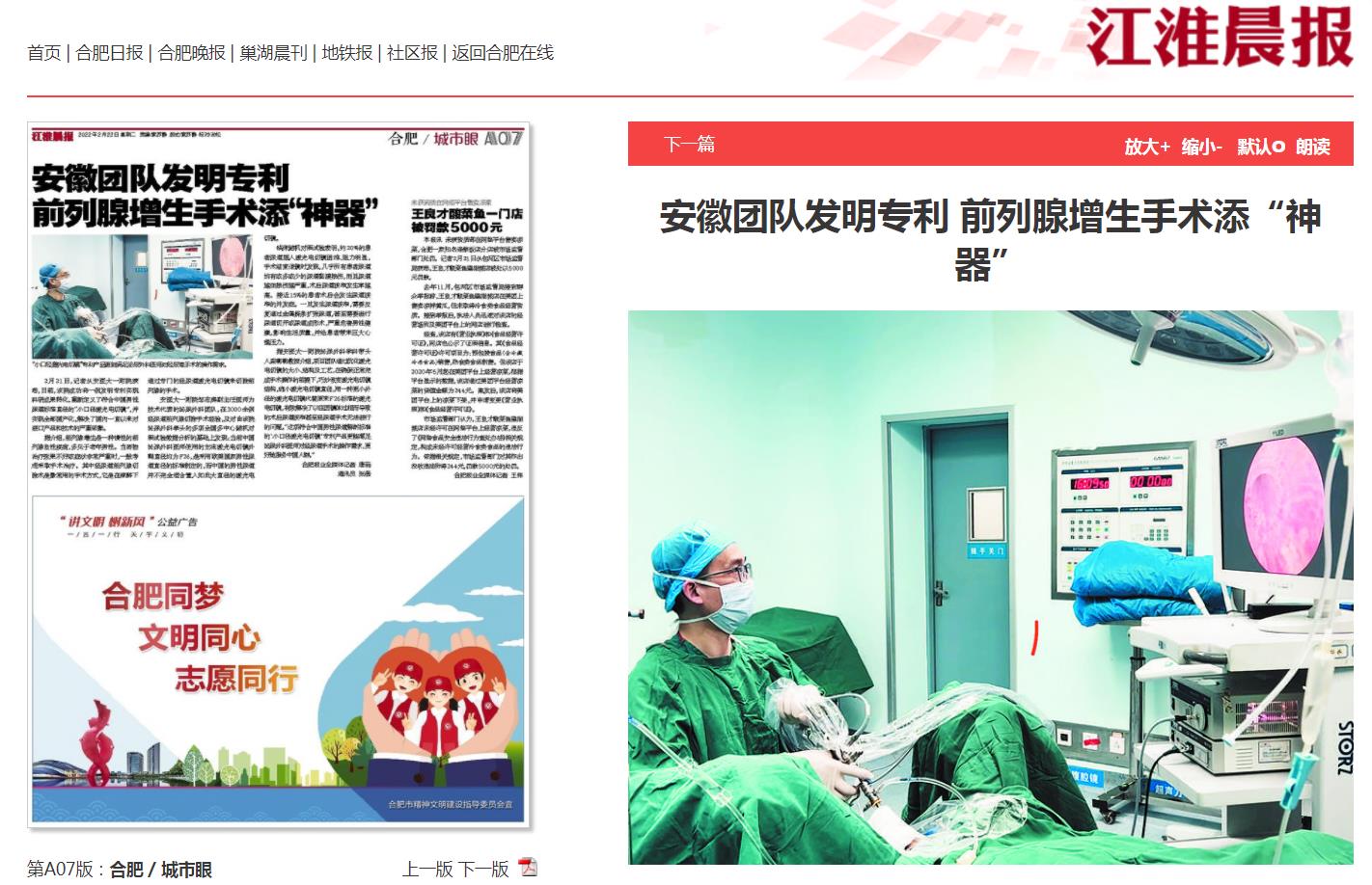 安医大一附院邹志辉副主任医师为技术代表的泌尿外科团队,在3000余例经尿道前列腺切除手术经验,及对由该院泌尿外科牵头的多项全国多中心随机对照试验数据分析的基础上发现:当前中国泌尿外科医师使用的主流激光电切镜外鞘直径均为F26,是采用欧美国家男性尿道直径的标准制定的,而中国的男性尿道并不完全适合置入如此大直径的激光电切镜。