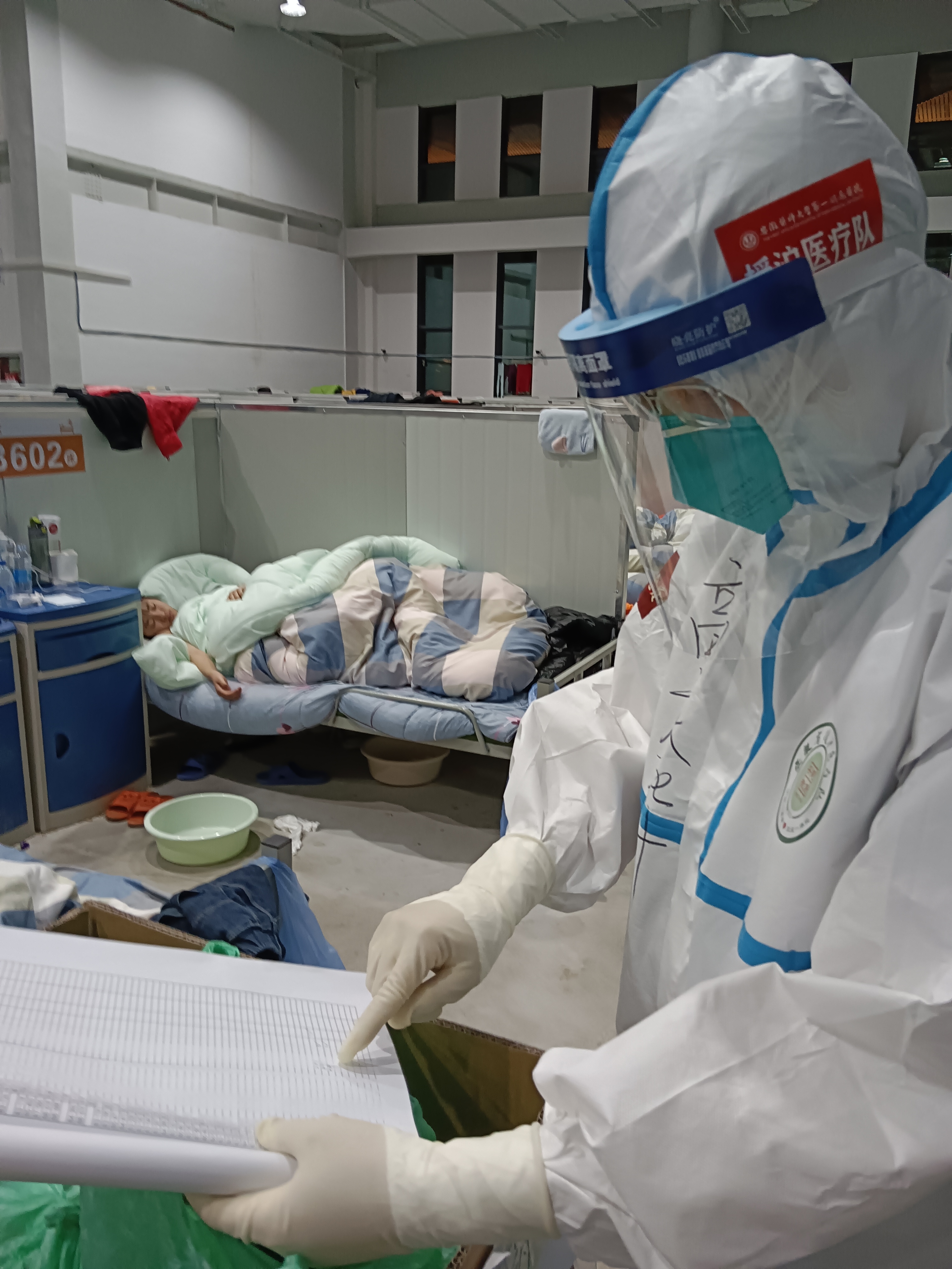 副组长张慧是我们的“物资总管”,从非典到新冠,这位呼吸科护士长作为“抗疫老兵”三次上一线,年近六十的她时刻惦记着队员的物资发放和补给,常常忙到深夜,对我们说的最多的话就是“别急,一开始会有点困难,慢慢就会好的”。