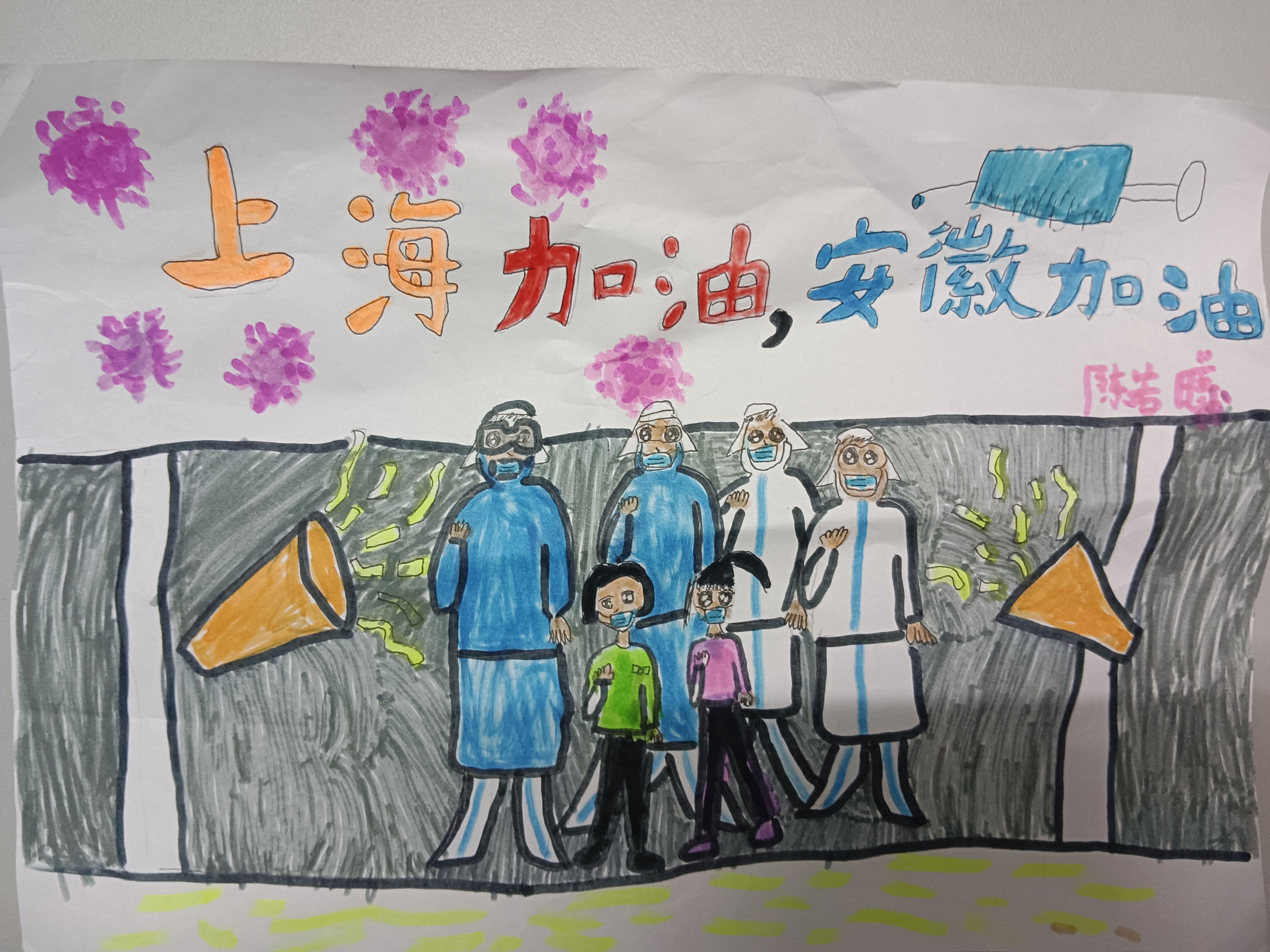 让我感动的是,舱内的孩子从七岁到十几岁,住在方舱里乖乖带着口罩,从来不吵闹,有的孩子之间还结下了深厚的友谊。我们把我们自己苹果和酸奶送给他们,他们则会把自己画的画送给我们,一张张天真的笑脸在我们心底泼洒下大片大片的阳光。更多的时候,他们安静地上着网课,写着作业,此情此景让人动容。少年强则国强,方舱的孩子啊,在你们之后的记忆里,会记得这段特殊的日子,你们没有因为特殊时期,而虚度了时光,放弃了学业,你们就是我们守护这里的最大理由!