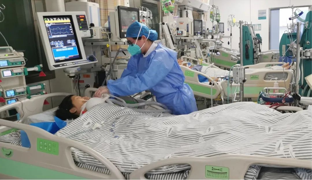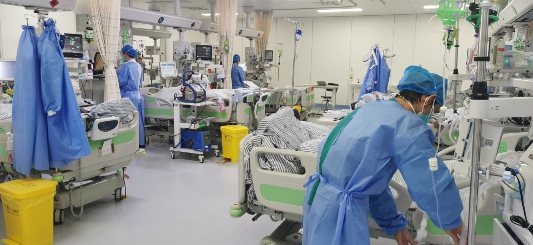 开放收治后短短三天,高新院区重症医学科32张床位很快收满,全部是危重症患者:暴发性心肌炎、重症肺炎、新冠感染合并多脏器功能衰竭等。科室3台ECMO同时运行,5台CRRT持续床边血滤,17台呼吸机,6台高流量氧疗,所有危重症患者救治仪器利用率达到100%。俯卧位通气,是这三年救治总结的法宝,成本低,效果好。每天最高有8个患者的俯卧位通气治疗,即便再忙碌、人员再紧缺,在每一个治疗及护理的细节上都必须严谨。插管,上机,抢救,医护人员的双脚恨不得踩着风火轮。在危难紧要关头,全科医护人员表现出强大的心理素质和应急能力,他们与时间赛跑、给予患者最大程度的生命救护。