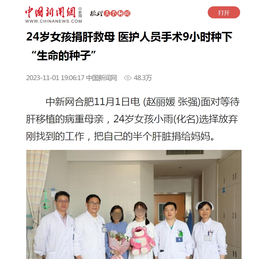 近日,安徽医科大学第一附属医院成功为一对母女实施了亲体右半肝移植手术。如今,“新的”肝脏在母亲的体内已经正常运转,母女两人恢复良好,这个家庭重获新生。